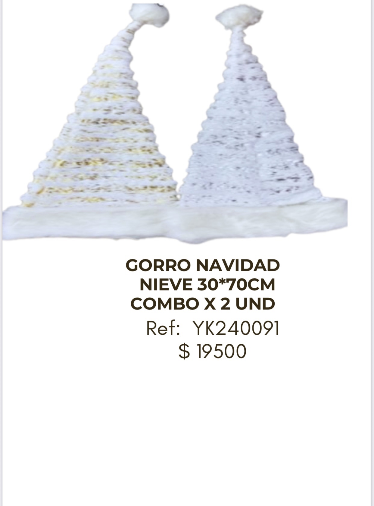 Gorro Navidad Nieve 30x70cm combo x 2 unidades